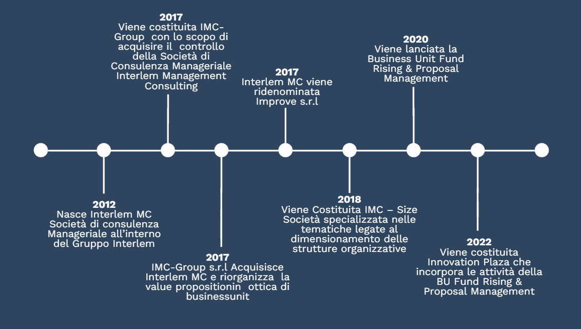 Il Gruppo IMC nasce nel 2012 e siamo una società di consulenza direzionale specializzata nella trasformazione digitale, dedicata a supportare le organizzazioni nella progettazione e implementazione di soluzioni innovative capaci di generare valore sostenibile.