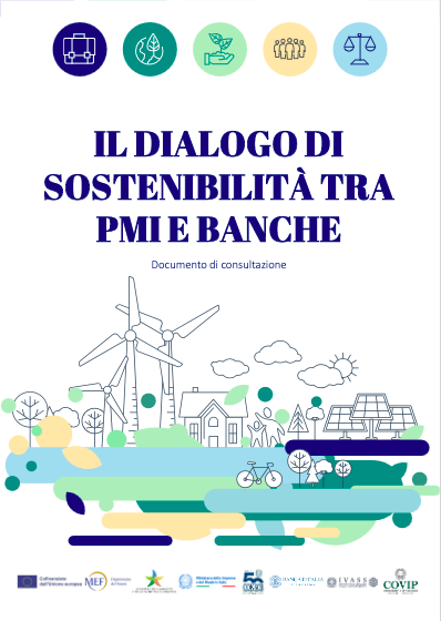 Nei giorni scorsi, si è aperto (fino al 2 agosto), la consultazione pubblica del documento “Il Dialogo di Sostenibilità tra PMI e Banche” elaborato dal Tavolo di coordinamento sulla finanza sostenibile presieduto dal Ministero dell’Economia e delle Finanze, con la partecipazione del Ministero dell’Ambiente e della Sicurezza Energetica, della Banca d’Italia, della Commissione Nazionale per le Società e la Borsa (CONSOB), dell’Istituto per la Vigilanza sulle Assicurazioni (IVASS) e della Commissione di Vigilanza sui Fondi Pensione (COVIP).