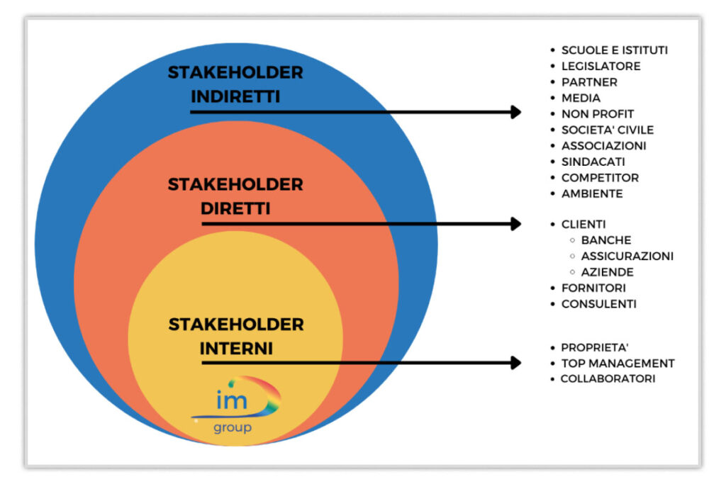 La mappa degli stakeholder identifica i portatori d’interesse rispetto alle attività di IMC Group.